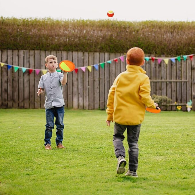 - 【Keep the Kids Active, Learning Basic Motor Skills】The catch and toss game helps kids develop hand-eye coordination and arm muscles, keeping them active and helping to release their extra energy. It is an effective way for kids to learn about baseball and football. EVERICH paddle rackets have been laboratory tested and are safe and non-toxic, so they are safe for kids to play with.