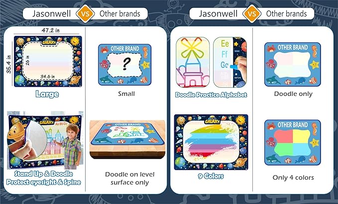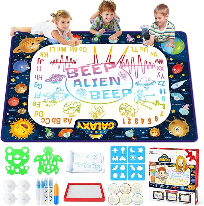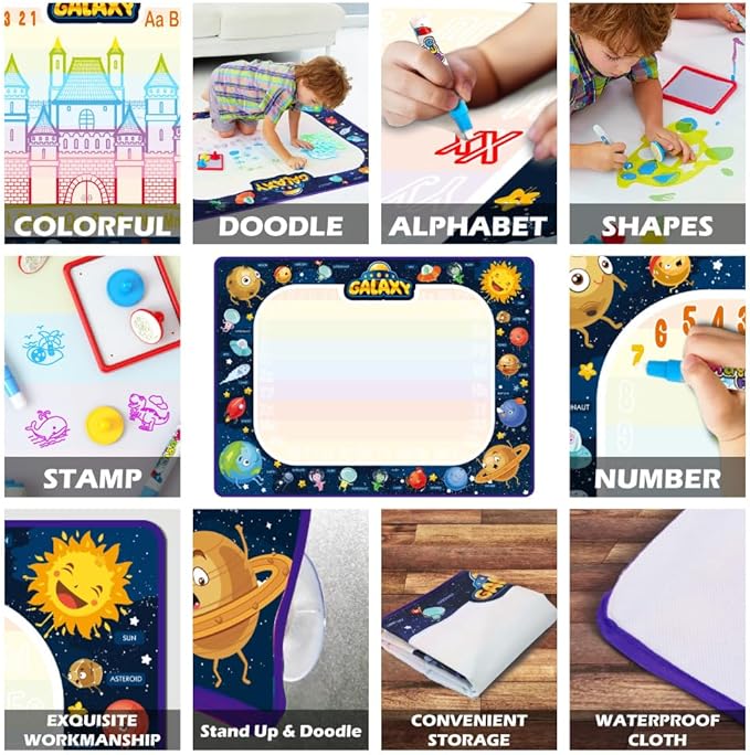 Jasonwell Aqua Water Doodle Mat 48 x 36 Inches Large Magic Drawing Doodling Mat Coloring Mat Educational Toys Christmas Birthday Gifts for Kids Toddler Boys Girls Age 2 3 4 5 6 7 8 Year Old (Galaxy)
