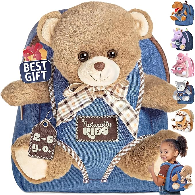 - Toddler travel backpack: great for outdoor adventures; small backpack fits toys and essentials, making it a perfect gift for 2-5 year old; your child will stay entertained on the road with a stuffed bear that easily comes out of the backpack