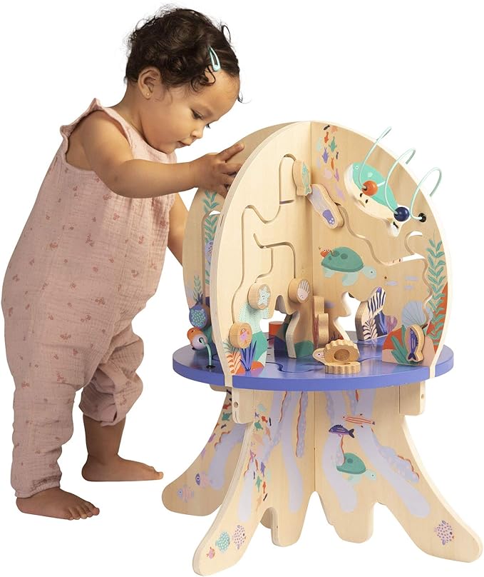 - HANDS-ON LEARNING TOY FUN: The Deep Sea Adventure wooden toddler toy is packed full of motor skill activities. Your little one won't even know they're practicing their fine and gross motor skills as they investigate all of the features offered by this sea-themed activity center.