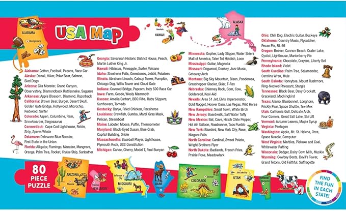MasterPieces Floor Puzzle - Jumbo Size 80 Piece Jigsaw Puzzle for Kids - USA Map Shaped Puzzle - 3ftx2ft