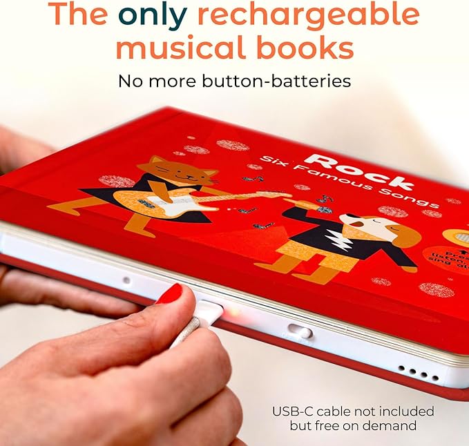 Cali's Books Rock Music Books for Toddlers 1-3 - Singing Button Sound Board Book for 2 Year Old Children, Musical Toddler Rock Songs Toys, 18 Month Interactive Learning Toy, USB-C Rechargeable