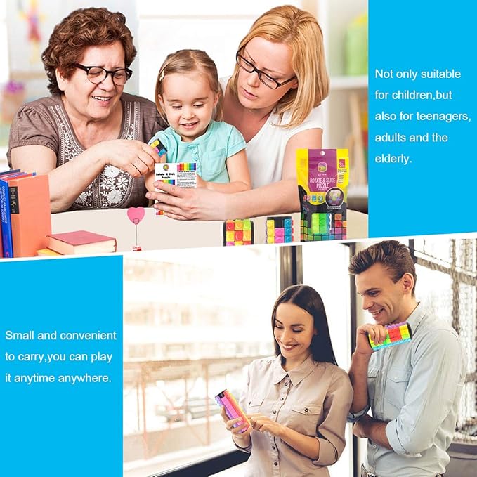 - 【 Uses 】Unlike other brain games,the patented,critically acclaimed cube puzzle is a unique toy and unique gift,it is a combination of rotating magic cube and slide puzzle,each puzzle piece can be rotated from up and down with a whole column around the axis as well as be slided left and right on a row