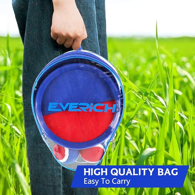- 【Outdoor/Sand/Backyard Game, Great Gift】The EVERICH catch ball set comes with a transparent zip-up bag for easy carrying and storage. It is a fun game and high-quality sand toy. It is great for boys and girls ages 3-12 as a birthday or Christmas gift, helping them to stay away from screens and form good exercise habits.