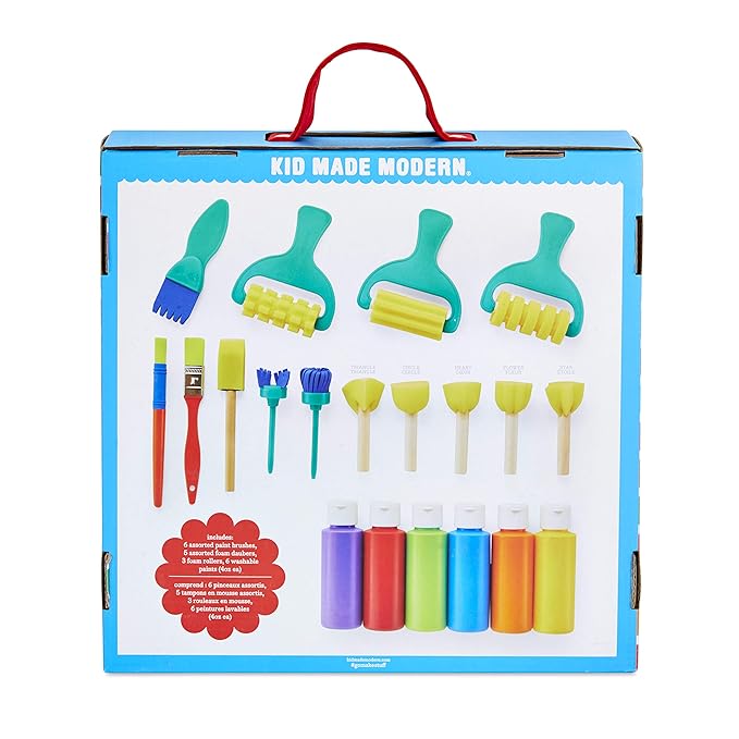 - Complete Art Set: This kids paint kit includes 6 assorted paint brushes, 5 assorted foam daubers, 3 foam rollers and 6 washable paints (4fl oz each). Everything is together to unleash kids' creativity and provide hours of artistic fun!