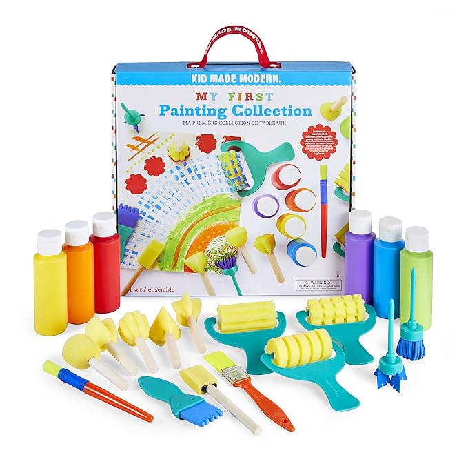 Kid Made Modern My First Painting Collection - Kids Paint Set Ages 3 4 5 6 7 8+ - Non Toxic Painting Supplies Kits & Washable Paints - Fun Paint Activities for Toddler Preschool & Classroom (20 Pcs)