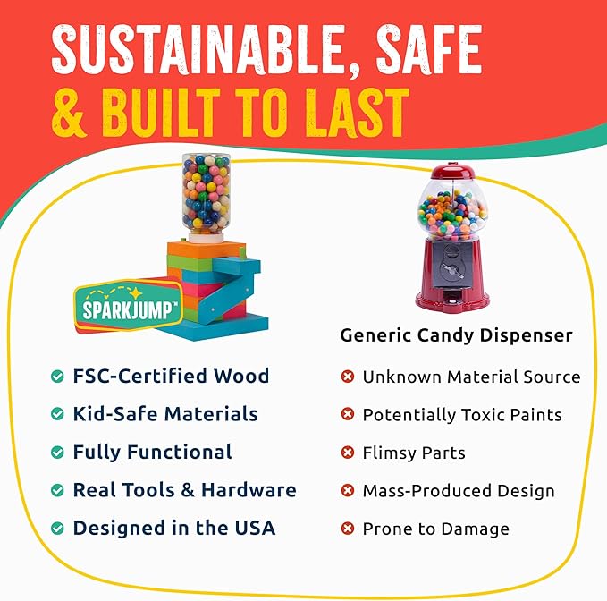 SparkJump DIY Wood Building Kits, STEM Woodworking Kit for Kids, Creative Fun Craft Projects, Great Gift for Boys & Girls (Candy Dispenser, 1-Pack)
