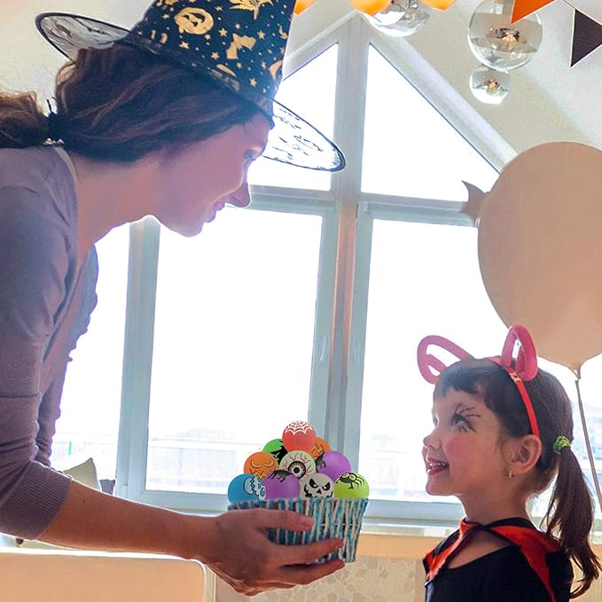 - High-Quality Halloween Novelty Toys for Goody Bags. Durable. Superior Quality. Deluxe Set. Long-Lasting. Expose to Light for the Best Glowing Effect. Please put the bouncing in the sun for 5 hours before using the product, so that its brightness is enough to support the whole Halloween night.