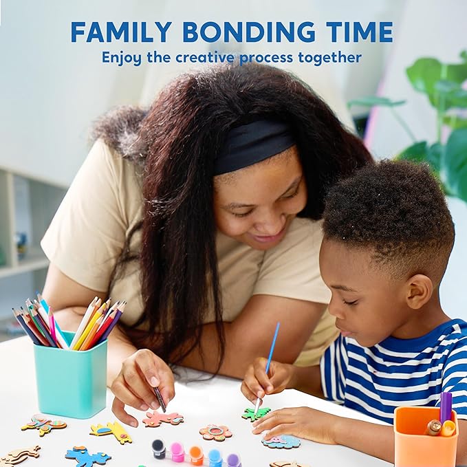- UNIQUE DESIGN & EASY TO USE. Our 12 pieces of paint your own arts and crafts kit will unleash your kid's creativity. Your kids will learn how to mix paints and express themselves through decorating art by making wooden crafts magnets.