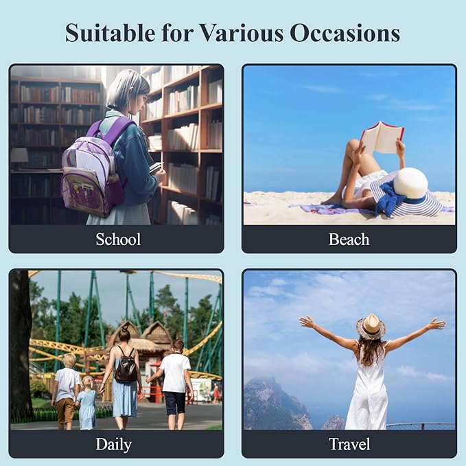 - Versatile and Convenient: This stylish clear plastic backpack is perfect for men, women, and boys girls students in any setting – whether it's school, work, or travel. With ample space for all your essentials, it eliminates the need for multiple bags, providing great convenience. It's the perfect gift for your family and friends, offering both style and functionality!