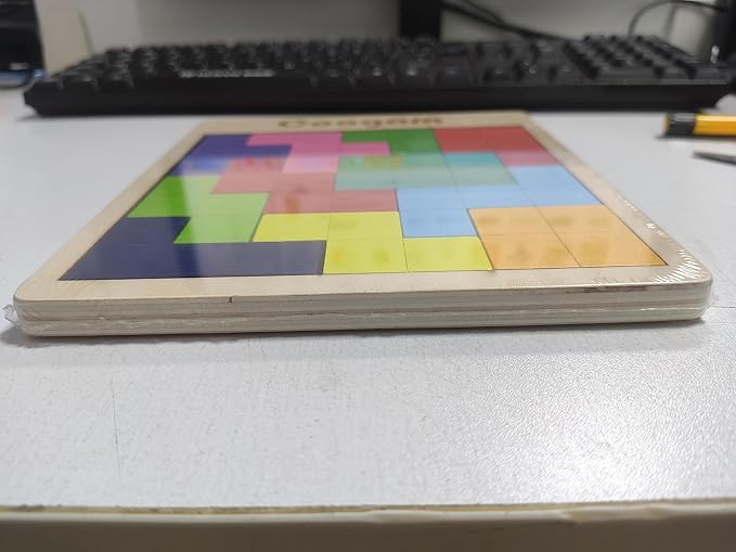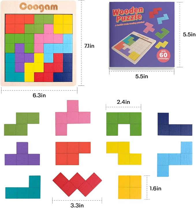 - Reliable Quality : Come with a puzzle board with 11 pieces colorful russian blocks of different shape blocks. The overall size of the board puzzle measures 6.3 x 7.1 inches. Made of 100% natural wood with harmless water-based paints. All pieces have been sanded smooth.
