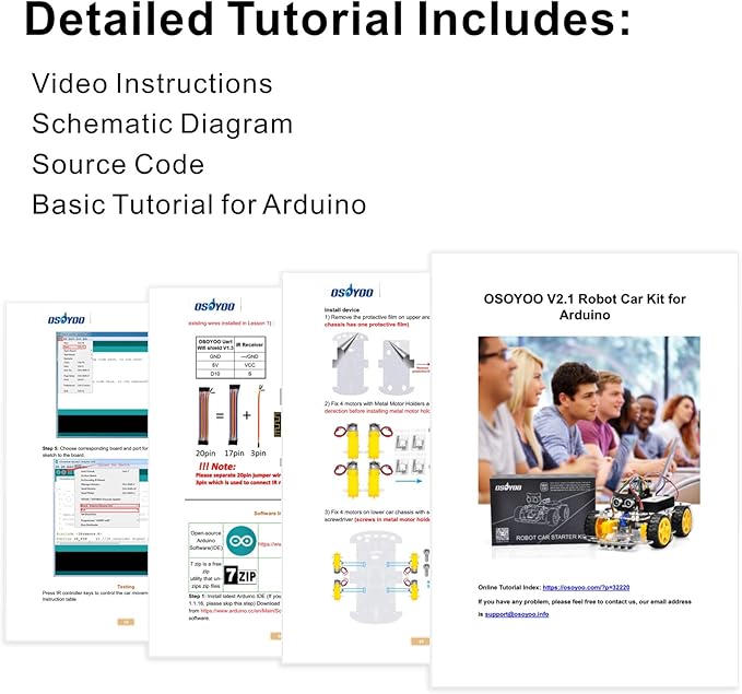 - DETAILED TUTORIAL – This package include a user’s guide and safety instructions. You can get all online instructions from the guide to learn how to assemble the robot car step-by-step with all additional contents included.