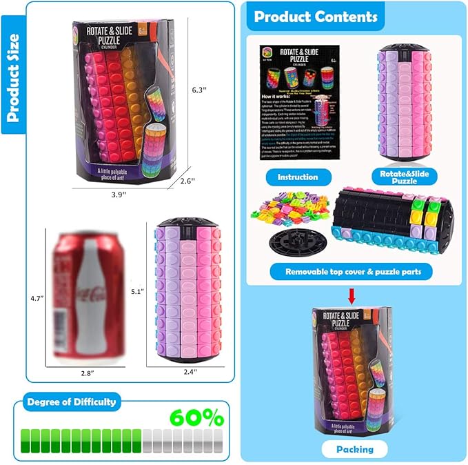 - 【Non-toxic,high-quality,safety】Nothing compares to the quality,color and unique design of the R.Y.TOYS cylinder puzzle gifts-All products have a variety of international toy quality and safety certifications
