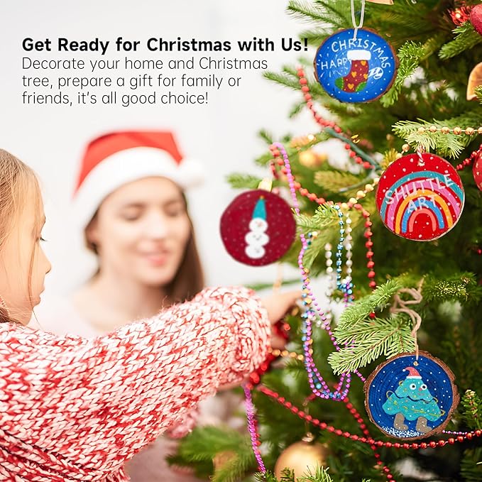 Wood Slices Kit, Shuttle Art 35 PCS Unfinished Natural Wood Slices with Pre-Drilled Hole, Acrylic Paint, Permanent Markers, Jute Twine, DIY Craft for Kids Adults Holiday Decoration Christmas Ornaments
