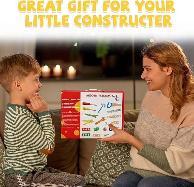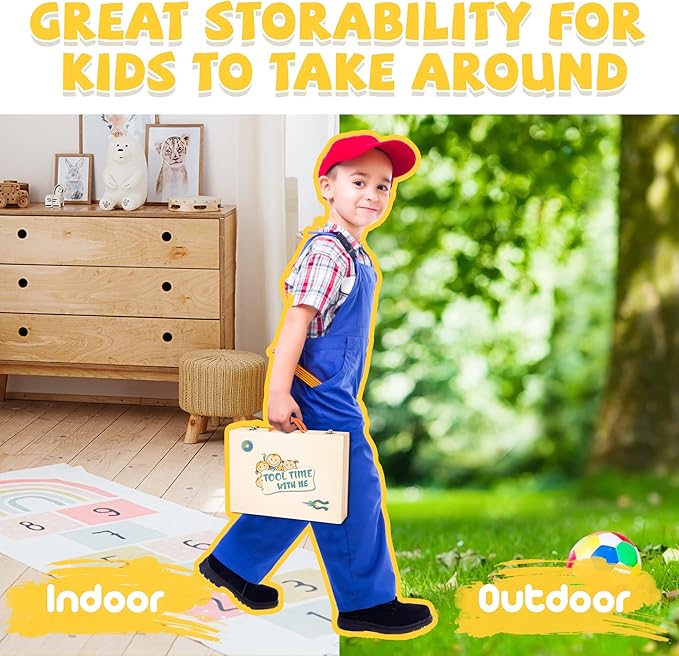 KIDWILL Tool Kit for Kids, 36-Piece Wooden Toddler Tools Set Includes Tool Box, Montessori Educational Stem Construction Toys for 2 3 4 5 6 Year Old Boys Girls, Best Birthday Gift for Kids