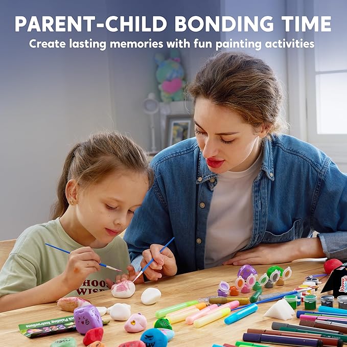 - Complete Crafting Experience: Whether you're a beginner or an experienced rock painter, the Glow-in-the-Dark Rock Painting Kit has something for you. The fine-tip paintbrush is great for precise lines, while the wider brush is perfect for larger areas. With the included transfer stickers, kids can get creative and add their personal touch to their rocks.