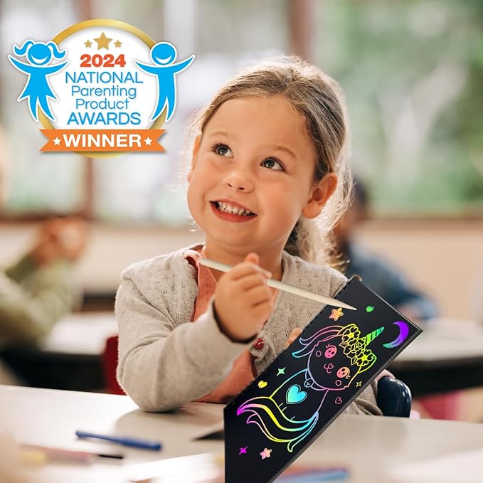 - 2. Fun Art Gifts for Kids: Our magic scratch off notebook is made of thick paper, no paint. An ideal educational toy for girls & boys learning to draw. Perfect travel toys art activities gifts for 3 4 5 6 year old girls boys