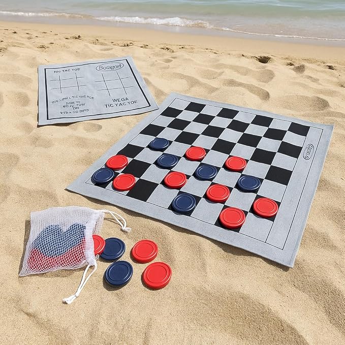 - PREMIUM QUALITY: Premium checkers mat including 24 pieces , beach tic tac toe rug made of 100% polyester—non-toxic, BPA-free for safe family fun