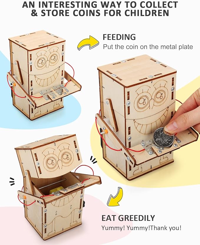 - 4 different kinds of models in one kit: The STEM toy kit comes with all of the parts you need to build electronic coin bank box,password lock case,music boxes. This funny DIY project is great gift for boys and girls age 8-12 years old.