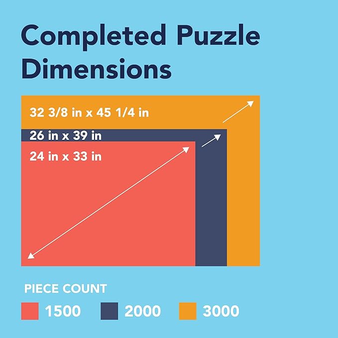 - [Perfect Gift] Whether for holidays, birthdays, or just because the intricate design and quality artwork make this puzzle not only a joy to complete, but also a beautiful piece to display once finished. Completed puzzle size: 23" x 33".