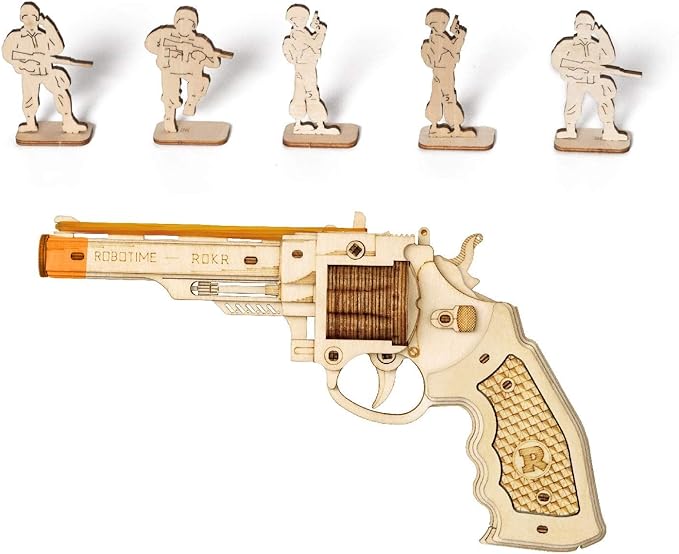 - 【Constructing Wooden Model with Clear Instruction】 This is a designed DIY revolver kit that requires your hands-on work to complete. The mechanical wooden puzzle toy uses precise laser-cut plywood.