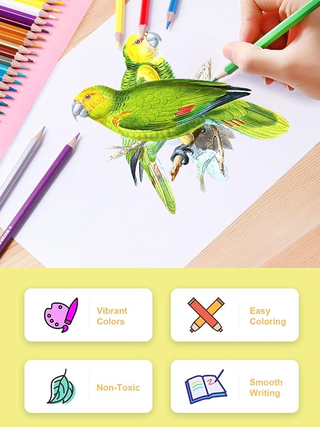 - Vibrant Color Pencils: Contains 48 vibrant colored pencils in a hexagonal barrel for easy grip and control