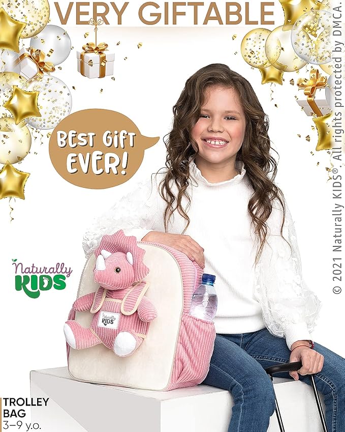 - Travel Kids Suitcase: Great for outdoor adventures; toddler luggage for boys and girls fits toys and essentials, making it a perfect 3-9 year old gift; your child will stay entertained on the road with a Trex toy that easily comes out of the backpack