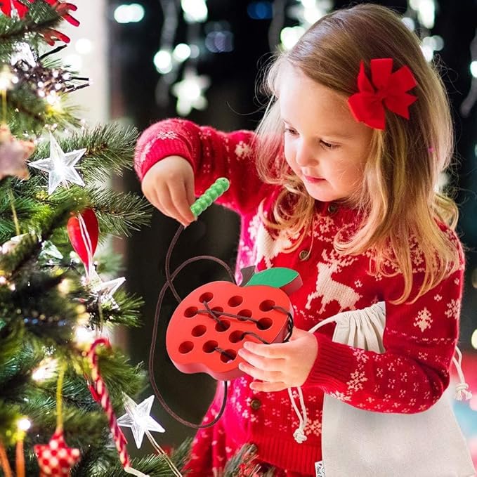 - FUN MONTESSORI TOYS - Develop your child's imagination and hand-eye coordination with these fine motor skills toys. Just hold the worm on a string and put it through the holes of the apple or watermelon. Your child can even use the 28-inch string to make letters, numbers, or shapes on the string toy. These wooden string toys for toddlers can also be used as speech and occupational therapy toys. A great addition to your autism toy collection