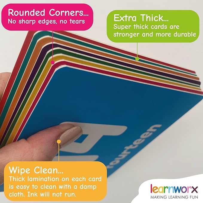 - Toddler Proof - We designed our numbers for toddlers set to be the best numbers flash cards on the market. Why? Because we know kids love to get messy. Learnworx number math cards have soft round corners & are easy to wipe clean using a damp cloth.