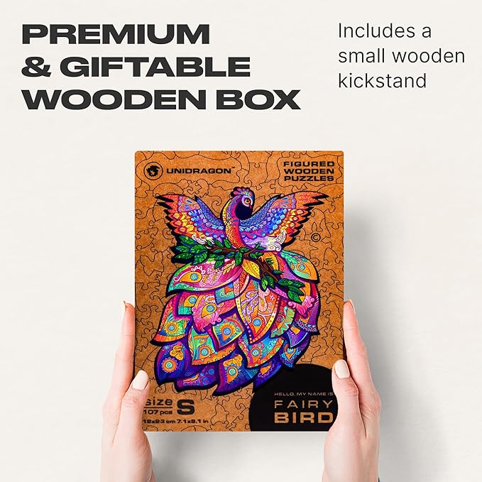 UNIDRAGON Original Wooden Jigsaw Puzzles - Fairy Bird, 107 Pieces, Small Size 7.1 x 9.1, Beautiful Gift Package, Unique Shape Best Gift for Adults and Kids