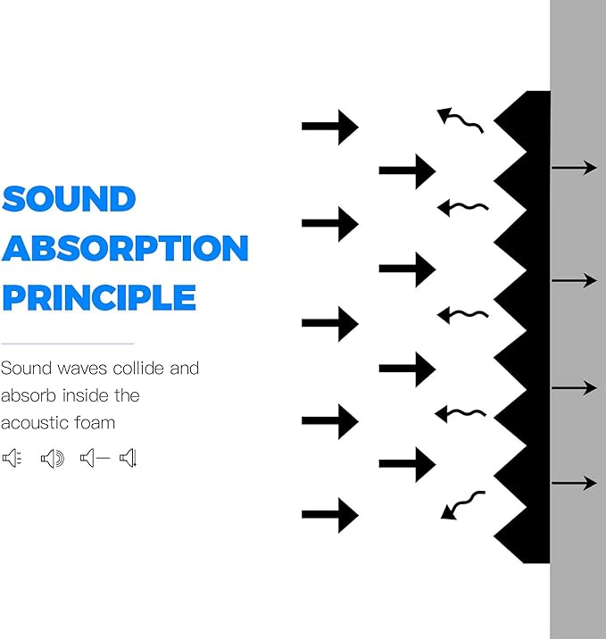 - 【Unique Pyramid 3D Design】Our acoustic foam panels are an ideal option for absorbing flutter echoes, standing waves and reverberation or unwanted medium-to-high frequencies of sound. Widely used in home or professional studio, home theater, control room, musical instrument studio, bar, vocal booth, church, meeting room, podcast studio, etc.