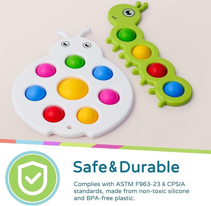 - Engage the Brain Sense: Push and bounce, “Pop, Pop, Pop” sounds very fun for babies, encouraging fine motor skills, tactile stimulation, sensory exploration, cause-and-effect learning.
