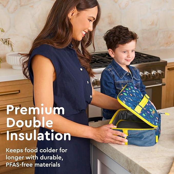 Bentgo Kids Lunch Bag - Durable, Double-Insulated Lunch Bag for Kids 3+; Holds Lunch Box, Water Bottle, & Snacks; Easy-Clean Water-Resistant Fabric & Multiple Zippered Pockets (Space)