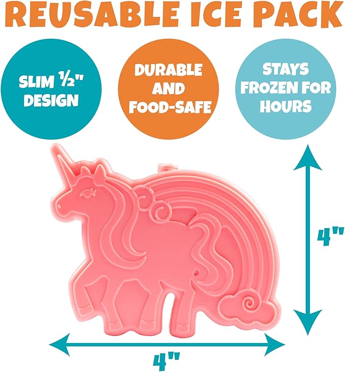 - Durable & Leak-Proof Hard Ice Pack: This adorable unicorn shaped bonus ice cooler is food safe and long-lasting. Bentology's hard ice packs quickly freeze and will not melt or leak because of its hard, protective material. Our slim design is space-saving leaving more room for snacks, and other goodies!