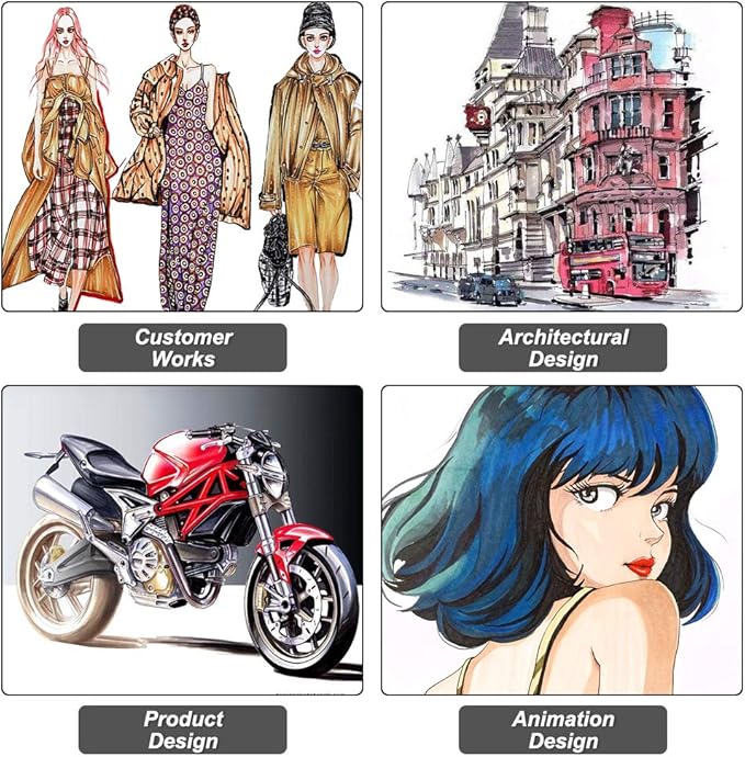 - BONUS ACCESSORIES: Bonus 2 micro-tip pens, 3 white highlighter pens, 1 marker pad, 1 color chart, 1 storage bag with holders, 1 pen case and product instruction. White highlighter pens for manga highlighting and micro-tip pens for details. The marker pad has a smooth surface that can prevent bleeding and smudging for your artwork. Black zipper case with holders is perfect for organized storage. Color charts can record your color collection all in one place. More accessories with cheaper price!