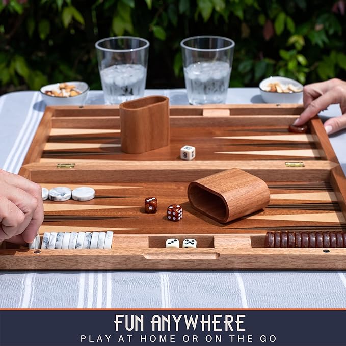 17 Inch Backgammon Sets for Adults. Beautiful Wood Inlaid Backgammon Board Game Set with Unique Checkers & Dice. Large Back Gammon Game Sets Travel Size for 2 Players Nardi or Tavla