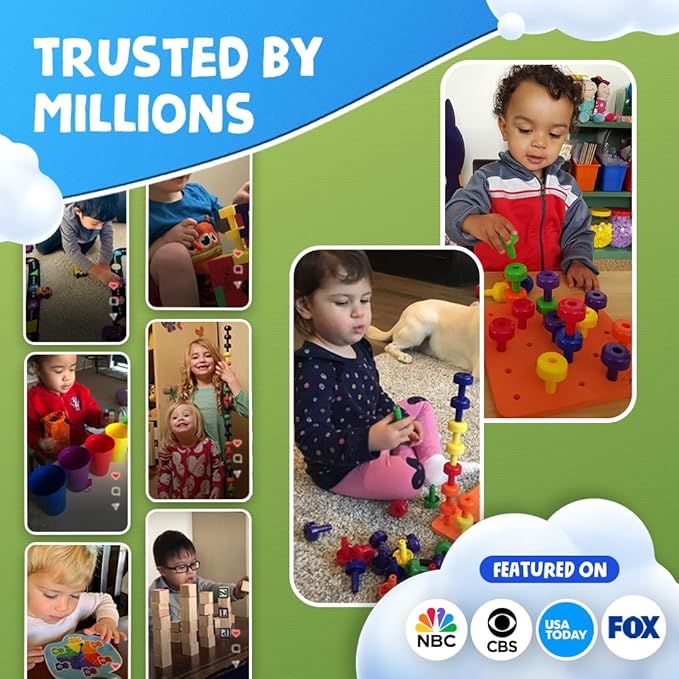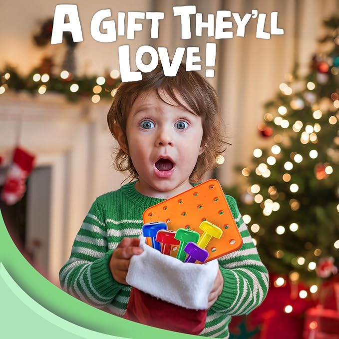 - Educational Value: This stacking pegs for toddlers 1-3 encourages learning in areas such as color recognition, patterning, basic math, and STEM concepts! This pegboard for toddlers help kids build important skills while having fun.