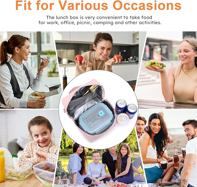 - Insulation & Freezing: the bag inside used the insulated 4mm thick PEVA lining,which provide great insulation to keep the food warm or fresh up to 5 hours. Very convenient to take food for work, office, picnic, camping and other activities.