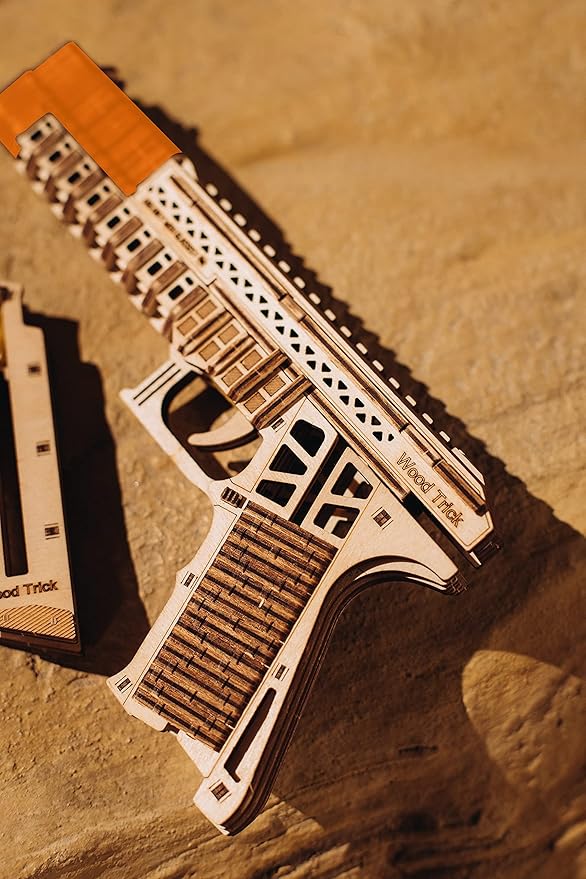 - NATURAL WOOD - This toy gun model kit is entirely made of wood and requires no glue for full assembly. Put together 256 pieces to create a fascinating wooden toy gun model with interactive elements. Comes with an illustrated, step-by-step assembly guide. Dimensions: 9.45*1.34*4.92 in