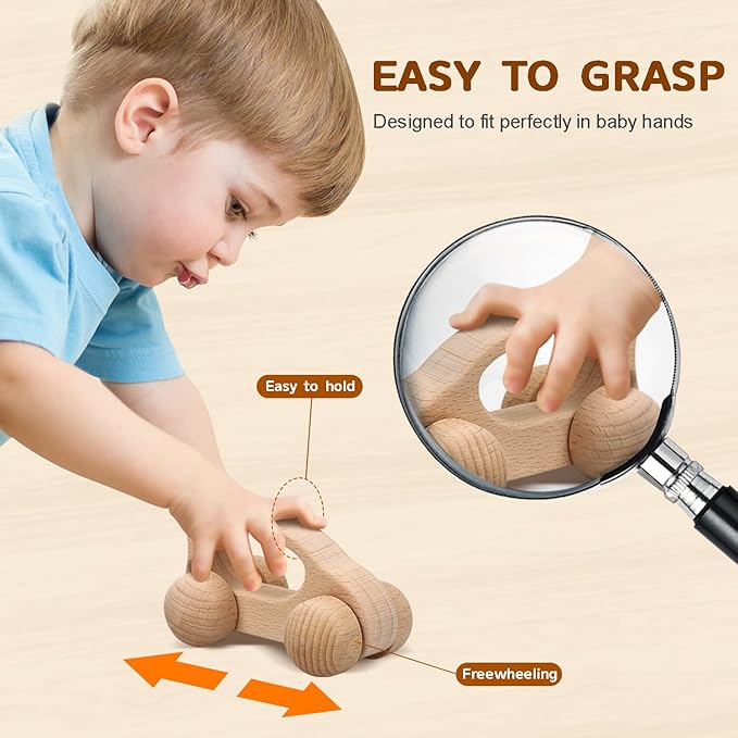 - BABY’S FIRST PUSH-PULL CAR: This set of wooden toy cars for babies is sure to delight. Small, easily grasped by baby hands, and designed to be adorable, these wooden pull toys can be rolled across the floor for simple, fun entertainment.