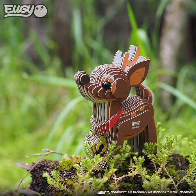 Eugy Reindeer 3D Puzzle, 22 Piece Eco-Friendly Educational Toy Puzzles for Boys, Girls & Kids Ages 6+