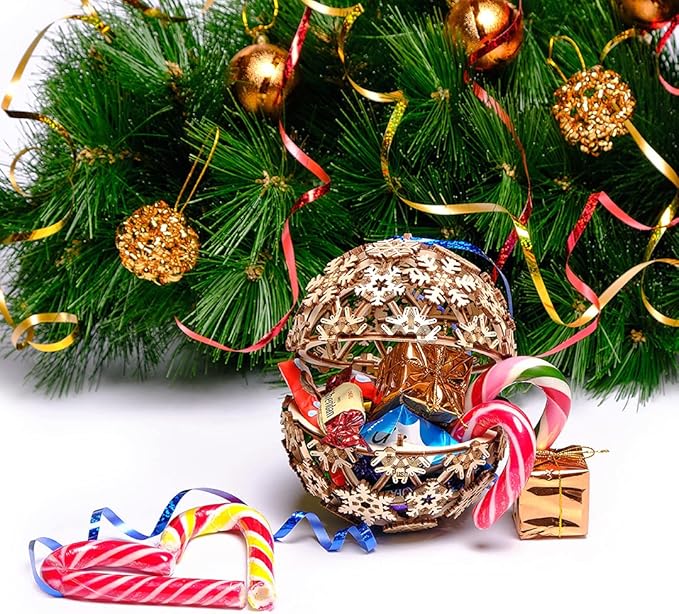 Wood Trick Christmas Ball 3D Wooden Puzzles for Adults to Build - Great Christmas Decor - Store Your Gifts - 5x4.7 in - Wooden Model Kits for Adults