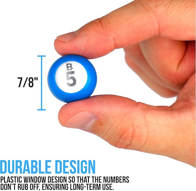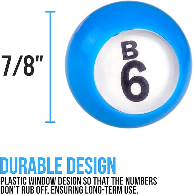 - Seamless Spin: Equipped with an 11” bingo cage with a wooden handle, this Bingo kit ensures fair play with random ball selection. The weighted selector prevents jams, while the wide catch keeps the balls organized and spill-free.