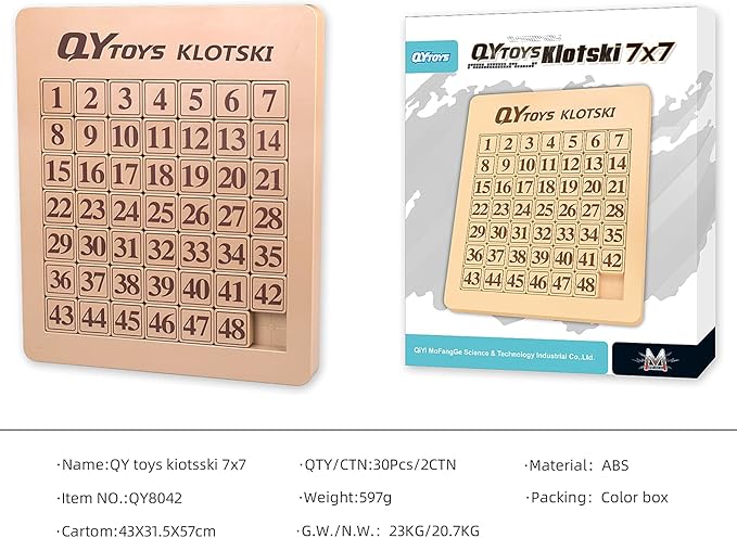 - The QY Toys 48 Klotski Puzzle Lite is a slide puzzle with 49 slots and 48 tiles. Arrange them in ascending order to solve. Good luck with this one.