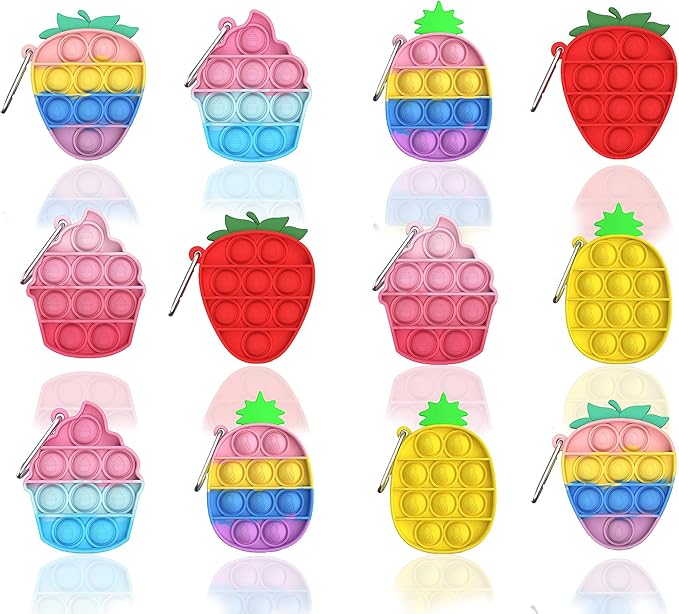 12 Pcs Mini Push pop Bubble Fidget Toy, Simple Fidget Toy, Keychain Bubble Pop Desk Toy, Decompression Toys Suitable for All Ages