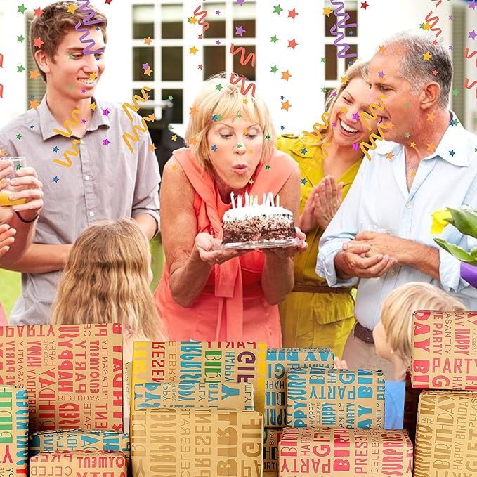 - ๐[Unique Universal Designs]: Each ECO-Friendly wrapping paper sheets is printed with "Happy Birthday" on one side of the plain recyclable birthday wrapping paper for men boys women girls kids adults, for all birthday gift occasions