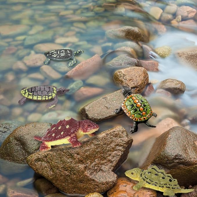 Animal Assorted Mini Plastic Figures Toy Set, Educational Party Cake Topper, Goody Bag Filler (12pcs Small Tortoise)