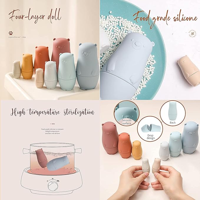 OESSUF Nesting Dolls | Russian Silicone Nesting Dolls for Toddlers | Matryoshka Doll Montessori Educational Toy | Bear Stacking Nesting Doll Toys | Gift for Kids 3 Years Up