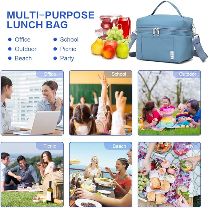 - Insulation & Freezing: NOL lunch bag features a three-layer heat insulation design. The outer layer is durable 900D Oxford cloth and polyester fiber. The inner layer is eco-friendly PEVA material, and the middle layer is filled with a 4mm thick insulating lining. This design keeps food warm or fresh for up to 5 hours. Perfect for work, office, picnic, camping, and other activities.