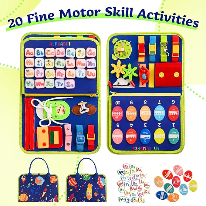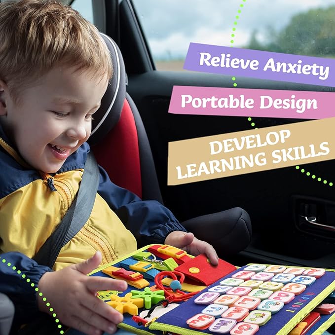 - MONTESSORI TOY - Montessori busy board helps kids naturally learn through play. The rich details are designed for basic skill learning. The perfect montessori busy book for toddlers to have fun and gain confidence